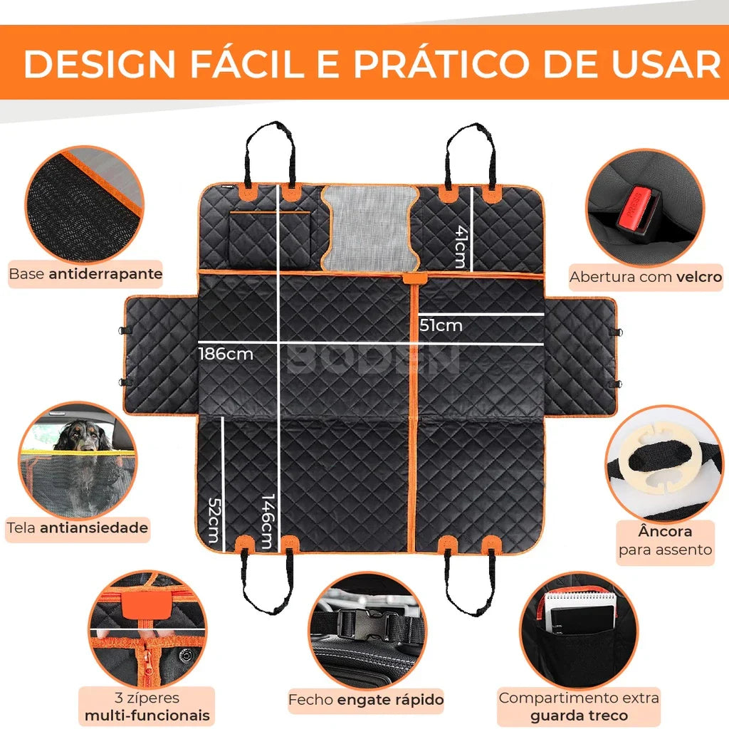 - Banco do Passageiro: Protege o assento da frente para que o pet viaje ao seu lado.